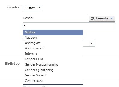 Zukünftig steht bei der Auswahl des Geschlechts neben «männlich» und «weiblich» auch «benutzerdefiniert», wo der User Möglichkeiten wie «Transfrau», «Intersex», «androgyn» oder «keine Angabe» auswählen kann. In einer weiteren Option kann man gewünschte Pronomen wie «er», «sie» oder «es/sie» auswählen, die zum Beispiel im Newsfeed verwendet werden: «Lucy hat sein Profilbild geändert». Je nach Privatsphäre kann das ausgewählte Geschlecht allen oder nur ausgewählten Usern sichtbar gemacht werden.