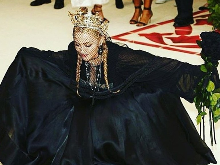 Auf dem roten Teppich zeigte sich die 59-jährige Sängerin mit einem mit Kruzifixen verzierten Krone und einem von Designer Jean Paul Gaultier entworfenen Kleid. Der französische Designer hatte bereits in den Neunzigerjahren ihr unverkennbares Spitztütenkorsett entworfen.