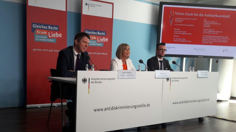 Ehe geöffnet – alles gut? Wohl kaum. Darauf wies die scheidende Leiterin der Antidiskriminierungsstelle des Bundes (ADS) Christine Lüders am Vormittag bei der Vorstellung der aktuellen Studie „Out im Office“ hin. Die Erhebung wurde erstmals im Jahr 2007 durchgeführt; die von der ADS unterstützte Neuauflage nach zehn Jahren zeigt Veränderungen seit der ersten Untersuchung auf und wurde um die Perspektive von Bi- und Trans*-Personen im Kontext von Arbeit und Wirtschaft ergänzt. Befragt wurden zwischen Februar und Mai 2017 insgesamt 2.884 lesbische, schwule, bisexuelle und Trans*-Beschäftigte.