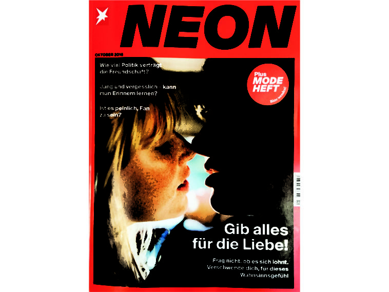 Natürlich kommt auch die Liebe nicht zu kurz. Die aktuelle Titelgeschichte lautet: Gib alles für die Liebe! Fünf Autoren erzählen, was sie für die Liebe alles geopfert haben. Einige haben ihren Job aufgegeben, andere sind ins Land des Partners gezogen. Die Botschaft ist simpel. Für die Liebe zu kämpfen, lohnt sich eigentlich immer. Das wollte mir das Heft schon vor fünf Jahren weismachen. Hat aber nicht geklappt. Möglicherweise muss die Liebe zwischendurch einfach mal komplett abflachen, um danach wieder neu zu entflammen. Wie meine Liebe für Neon.