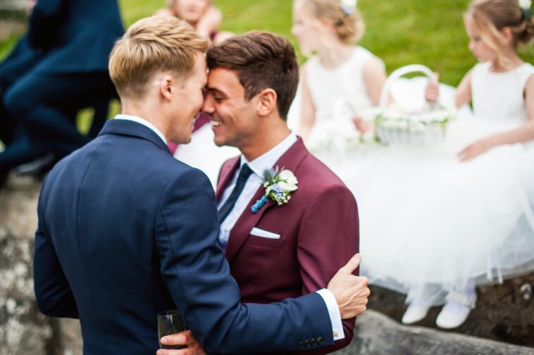 Am Samstag hat sich das Paar das Ja-Wort gegeben: Wie diverse Medien, darunter die BBC, berichten, haben Tom Daley (22) und Dustin Lance Black (42) in Anwesenheit von 50 engen Freunden und Verwandten in einem Luxushotel unweit von Daleys Heimatort Plymouth geheiratet. In der Sun heisst es, Daley und sein Partner hätten nach dem Motto „Romeo und Julia“ gefeiert und sogar die berühmte Balkon-Szene nachgestellt. Das hat ein Gast der Hochzeit gegenüber der BBC jedoch mit den Worten dementiert: «Ich weiss nicht, wo die [The Sun] waren, aber auf der Hochzeit, auf der ich war, waren sie nicht.»